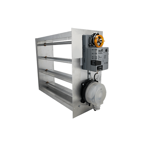 EB Series electronic bypass dampers are used to automatically bypass excess air when increases in duct static pressure occur due to closing of zone dampers. The EB series dampers utilize a floating-type motorized actuator along with the iO-SPC static pressure control. The iO-SPC has a fully calibrated setpoint dial for easy set-up and adjustment. The iO-SPC maintains the system static pressure by modulating the bypass damper. EB series electronic bypass dampers are recommended for systems from 0.08" WC up to 1.20" WC of static pressure.