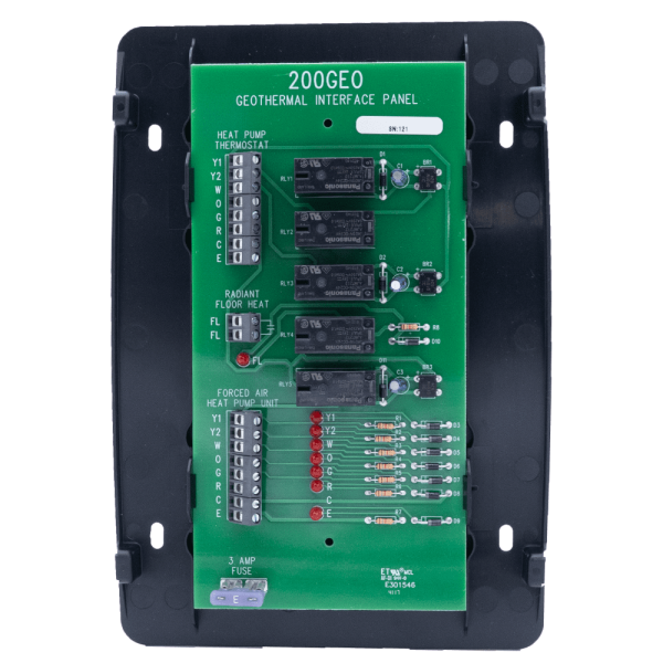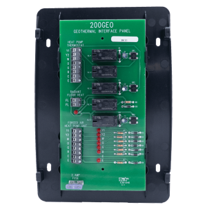 The Geothermal Interface Panel is designed to control a geothermal radiant floor heating system and a forced air geothermal system from a single room thermostat. The iO-GEO panel eliminates the hassle of installing a second thermostat because it integrates the radiant floor heat as Stage 1 and then the geothermal forced air heat pump for Stage 2. Metal Enclosure (iO-PAN-ME) available as an additional option on iO Zone Panels.