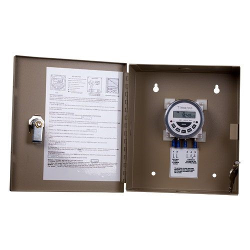 The TC-24-7 comes mounted in an all metal enclosure with key lock and conduit knockouts located on the top, bottom, and sides to facilitate easy wiring. Easy-to-follow instructions are included that make programming quick and easy. Once programming is completed, the press of a single key will display each programmed event.