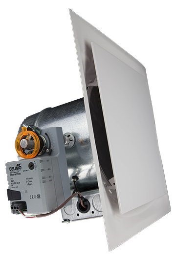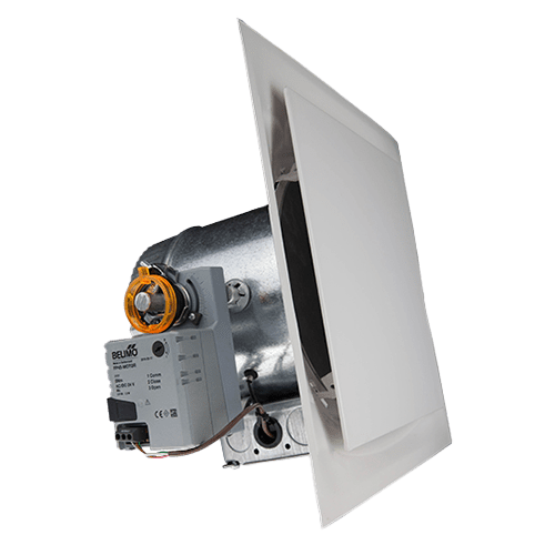 The VAV Diffuser is used to vary the supply air volume from a wall-mounted thermostat. This diffuser is designed to maintain coanda effect (draft free) of discharge air along the ceiling, providing a sustained discharge velocity throughout the volume range. Operating the diffuser from an individual wall-mounted thermostat enables users to choose their own desired comfort level. The wall- mounted thermostat will give closer temperature control and eliminate the need for a step ladder to adjust the setpoint in the diffuser itself. This can be used as stand alone with the Z-2000-T thermostat or in-conjunction with a Zone Panel (Z-2000).